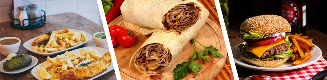Donner Kebab, Chips & Vegetable Pakora